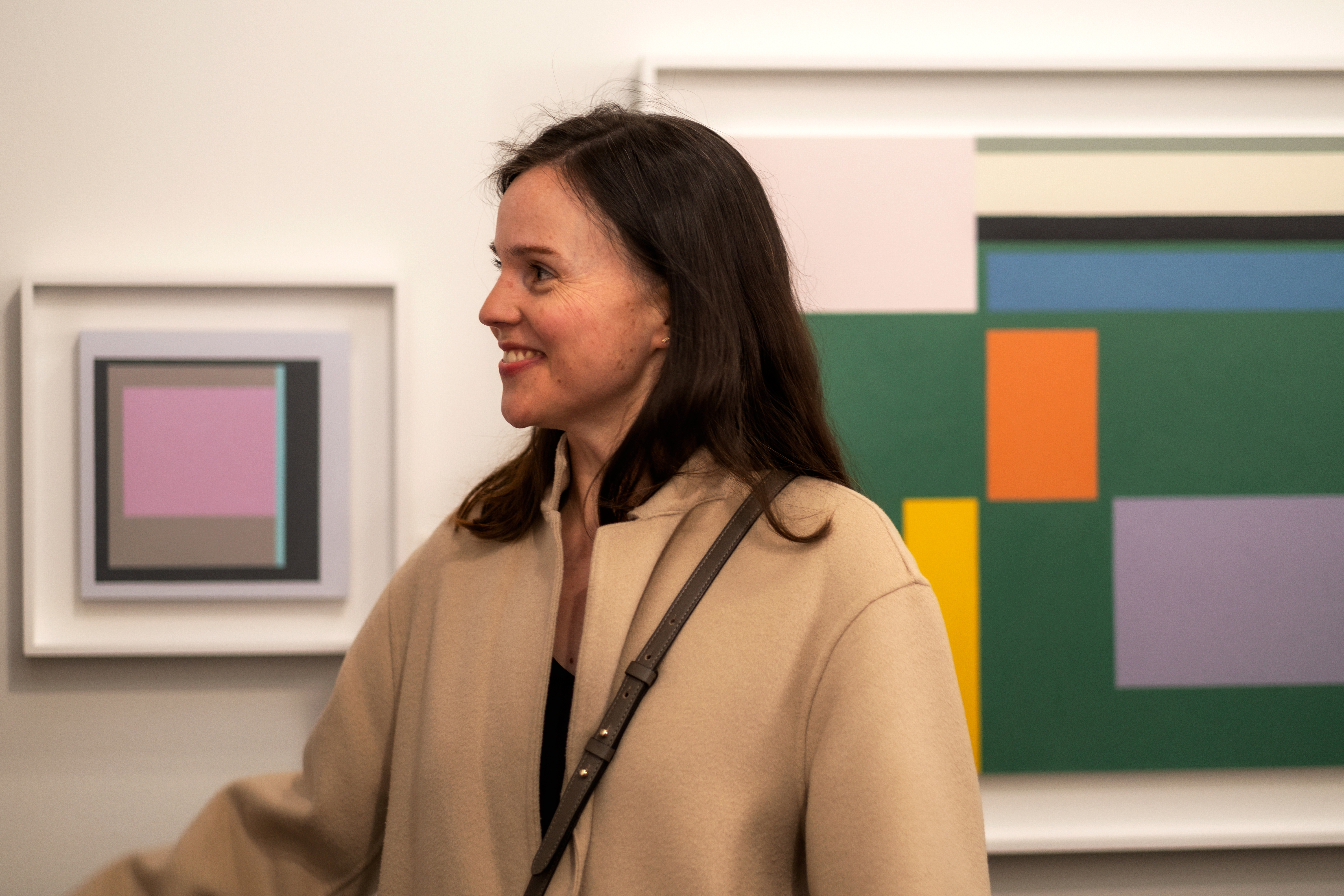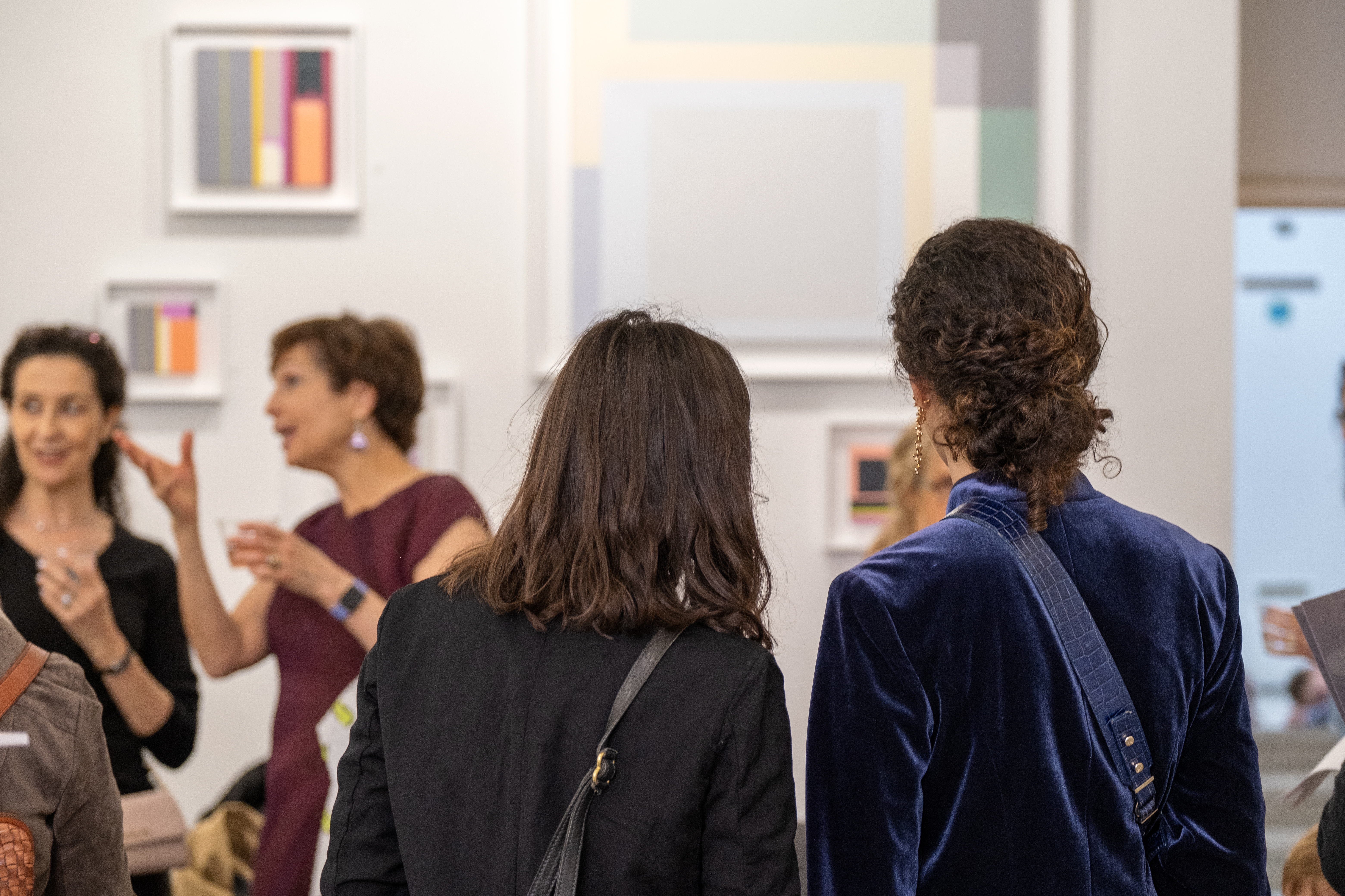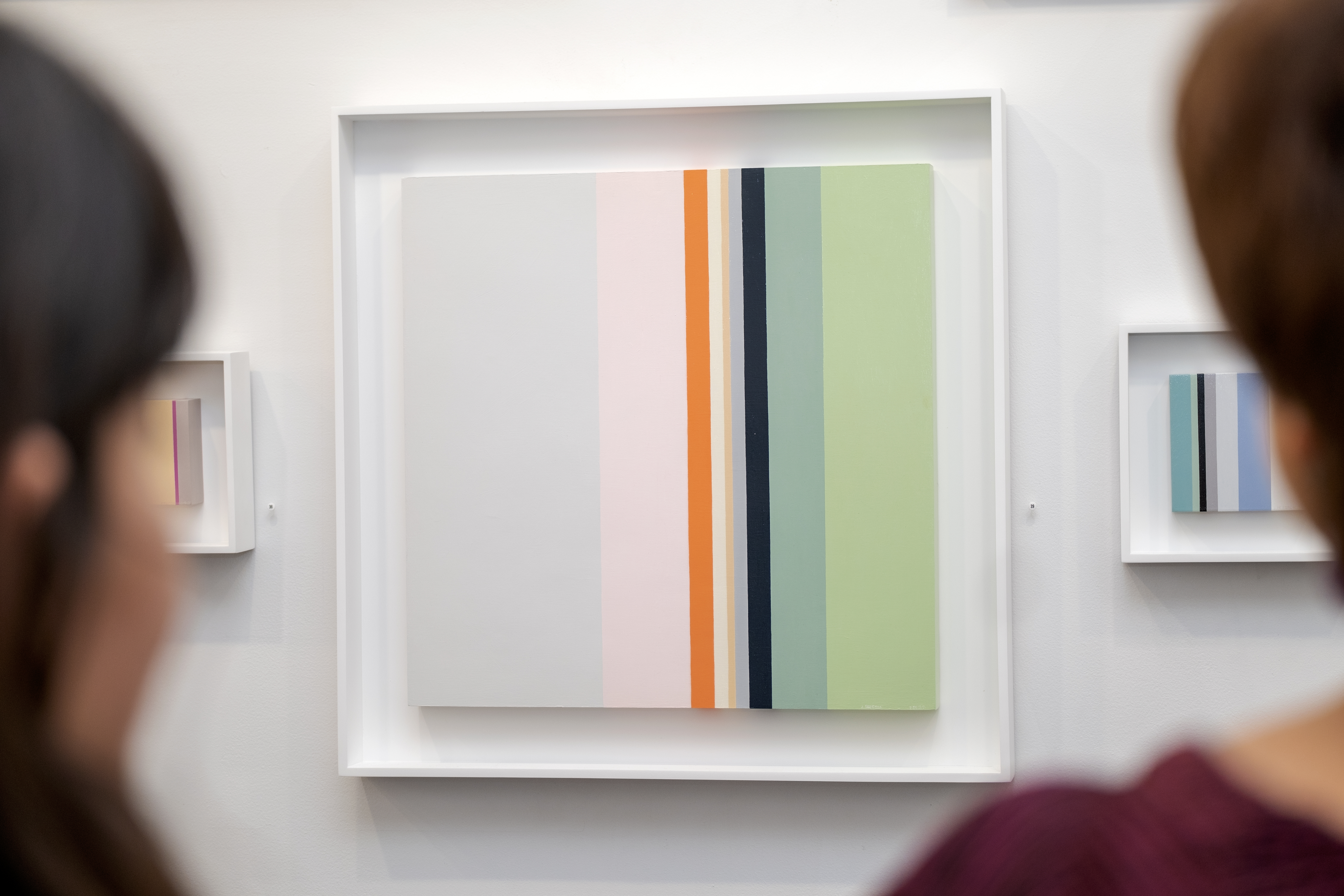 Hannah marveled at the exhibition slowly taking shape, the new series of what she describes as “hard-edged, geometric abstract paintings,” in which her mother, Judith, explores “her interest in the interactions of colors, patterns, and space that all push the boundaries of the pictorial plane and create a sense of spatial tension.” “The Washington Post once decided it was ‘reminiscent of Stella and Albers,’” Hannah explained.